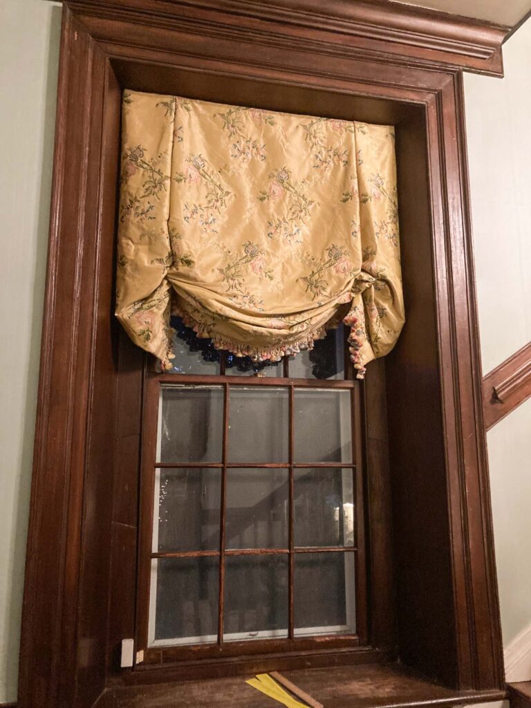 These beautiful curtains, crafted by the client using Scalamandre Cerasella French Documentary Flower Garland…